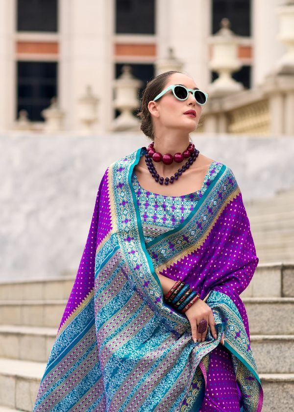 Purple Color Pure Soft Banarasi Silk Saree. Crafted from premium-quality silk, Bollywood Saree