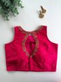 Step into elegance with this stunning designer Raspberry silk blouse, richly decorated