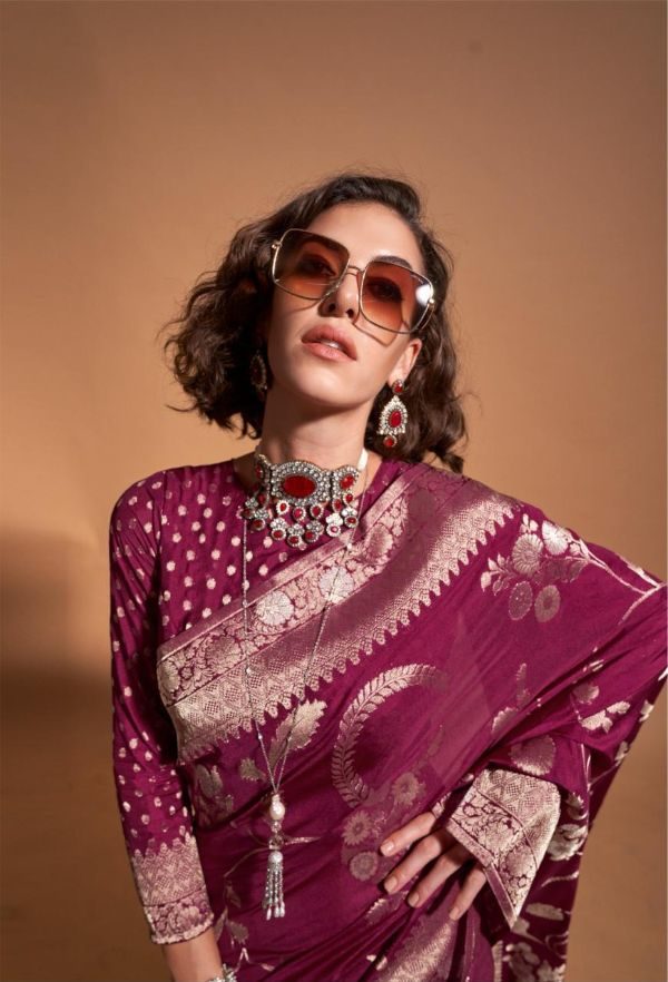 Wine Color Pure georgette handloom weaving silk Saree, Crafted premium Saree, Bollywood Saree